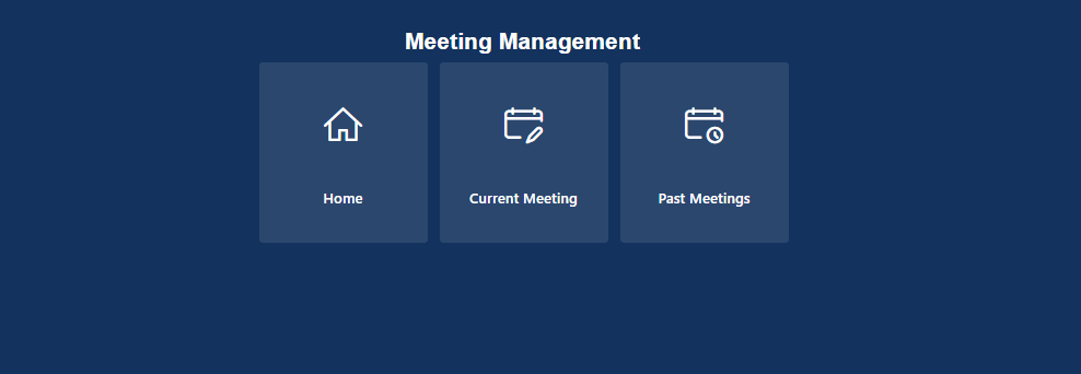 The ‘Meeting Management’ screen gives access to the ‘Current Meeting’ and ‘Past Meetings’ screens. The primary use of the ‘Meeting Management’ screen is for managing your current meeting and reviewing your past meetings.