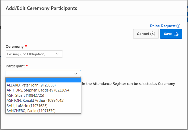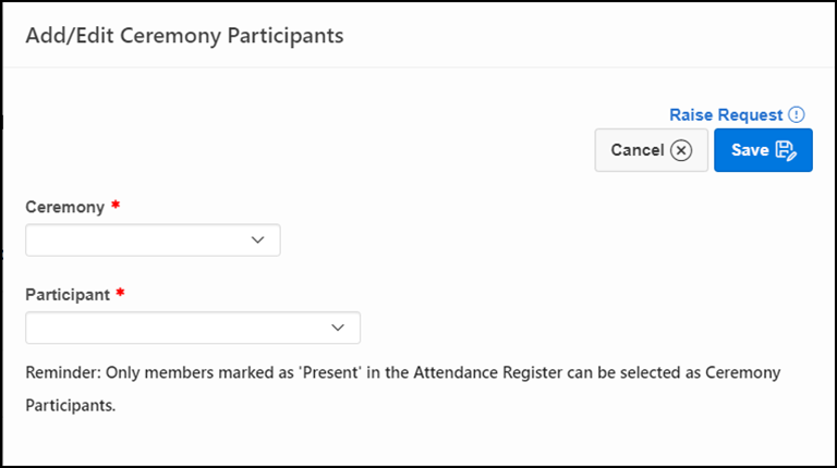 Honorary Members can now be included as Ceremonial Participants With the addition of Honorary Members within the Attendance Register, they can now also be selected as Ceremonial Participants.