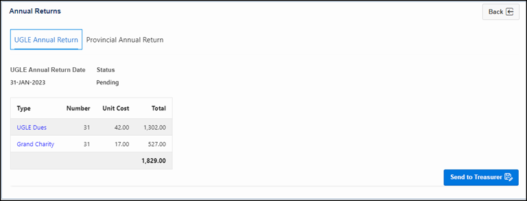 ‘Send to Treasurer’ button will now only send 2 emails, specific to the relevant Annual Return (Prevent duplication of emails to Treasurer) Previously when clicking the ‘Send to Treasurer’ button the Treasurer would often receive additional emails, some of which may have been for a previously approved Annual Return. The system will now only send the two emails relevant to the Annual Return tab the button was clicked from.