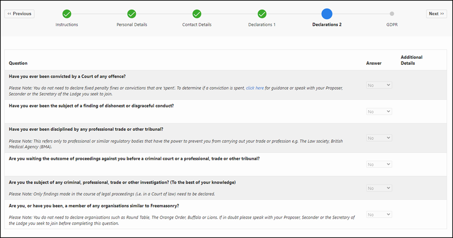 Online Registration Form Declaration Page Changes The Declaration pages of the Online Registration Form have been updated to have revised formatting and additional guidance. This guidance should improve the applicants understanding of what to include on the Online Registration Form and thus reduce the number of unnecessary halts.